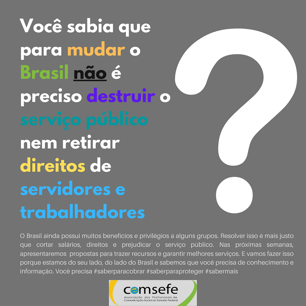 Apresentamos aqui nesta página nossa mais recente campanha, Saiba Mais, voltada para a defesa de servidores públicos.