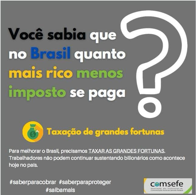 O Brasil possui muitos grupos privilegiados e isso precisa mudar. Por isso a ideia dessa campanha é apresentarmos propostas que aumentem a arrecadação de recursos para o país e ainda garantam a melhoria dos serviços públicos.