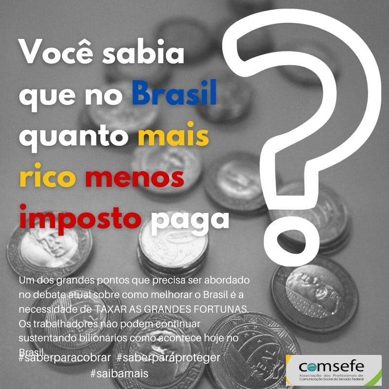 A taxação das grandes fortunas é prevista em nossa Constituição. E atualmente existem mais de 260 projetos em tramitação no Congresso Nacional sobre esse tema.